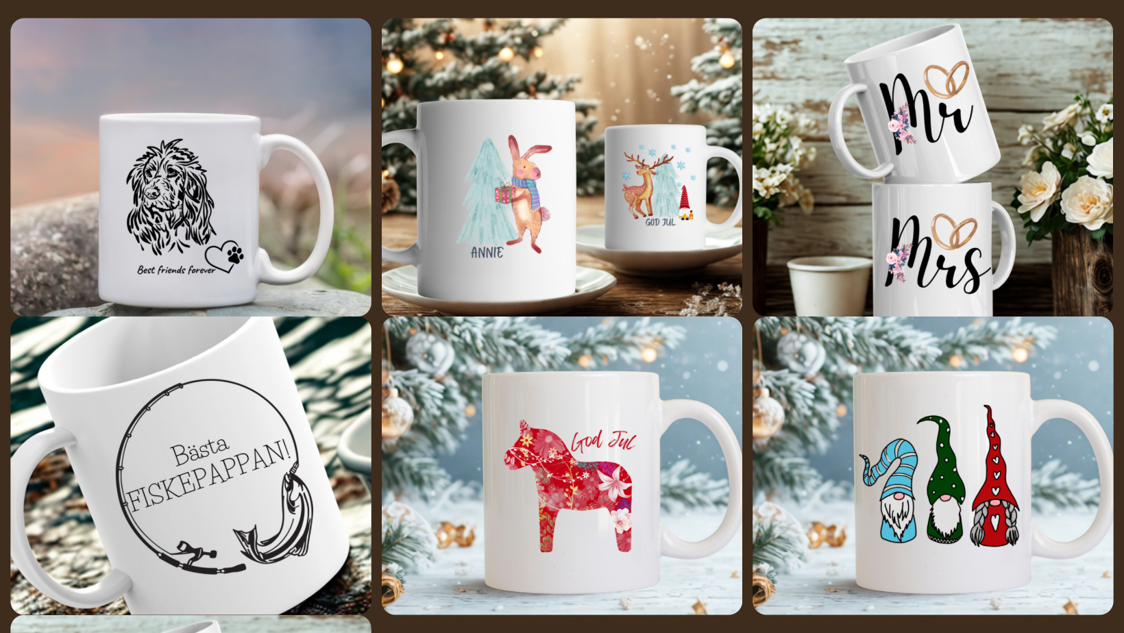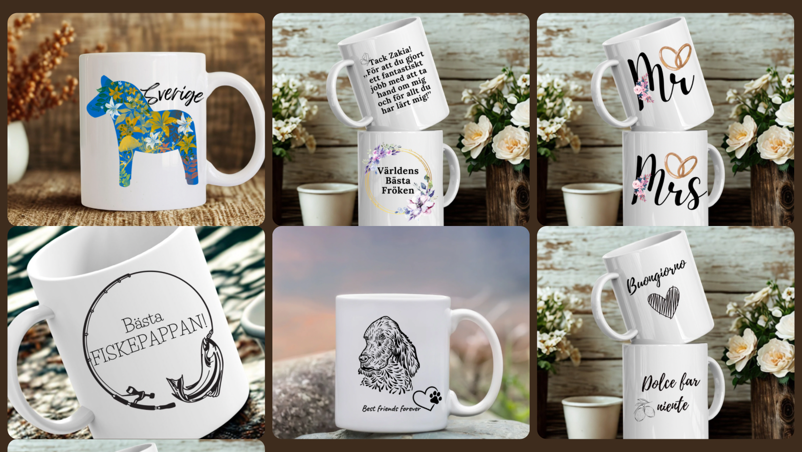 Vissa muggar har personlig text inkluderad i priset, andra tillkommer med +10 SEK.