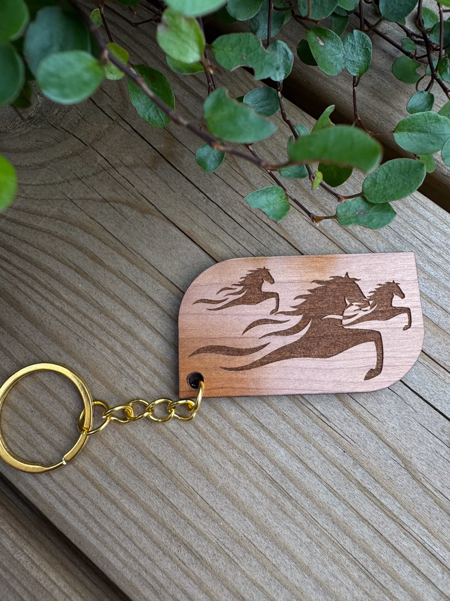En snygg och rustik nyckelring med graverat hästmotiv 🐎.