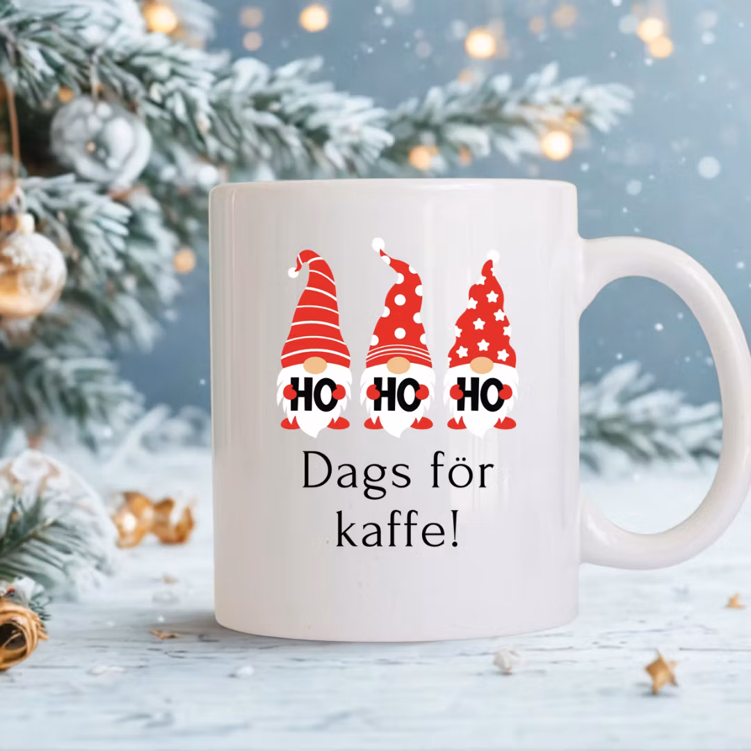 Under gnomerna står det “Dags för kaffe”, perfekt för alla kaffeälskare under julen! ☕✨