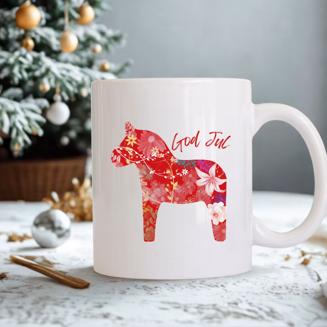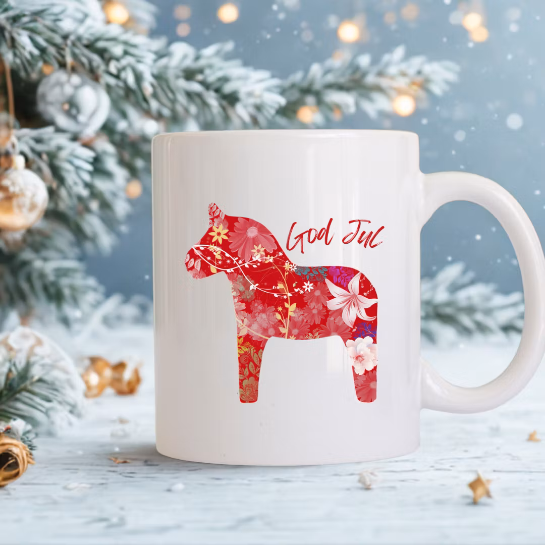 Charmig vit julmugg pĂ„ 325 ml inspirerad av traditionella DalahĂ€star. PĂ„ framsidan stĂ„r det klassiska âGod Julâ đ, och pĂ„ baksidan kan du lĂ€gga till din egen text eller namn â gör muggen helt personlig! Perfekt för alla som Ă€lskar nordisk juldesign och vill ge en unik julklapp. đđ